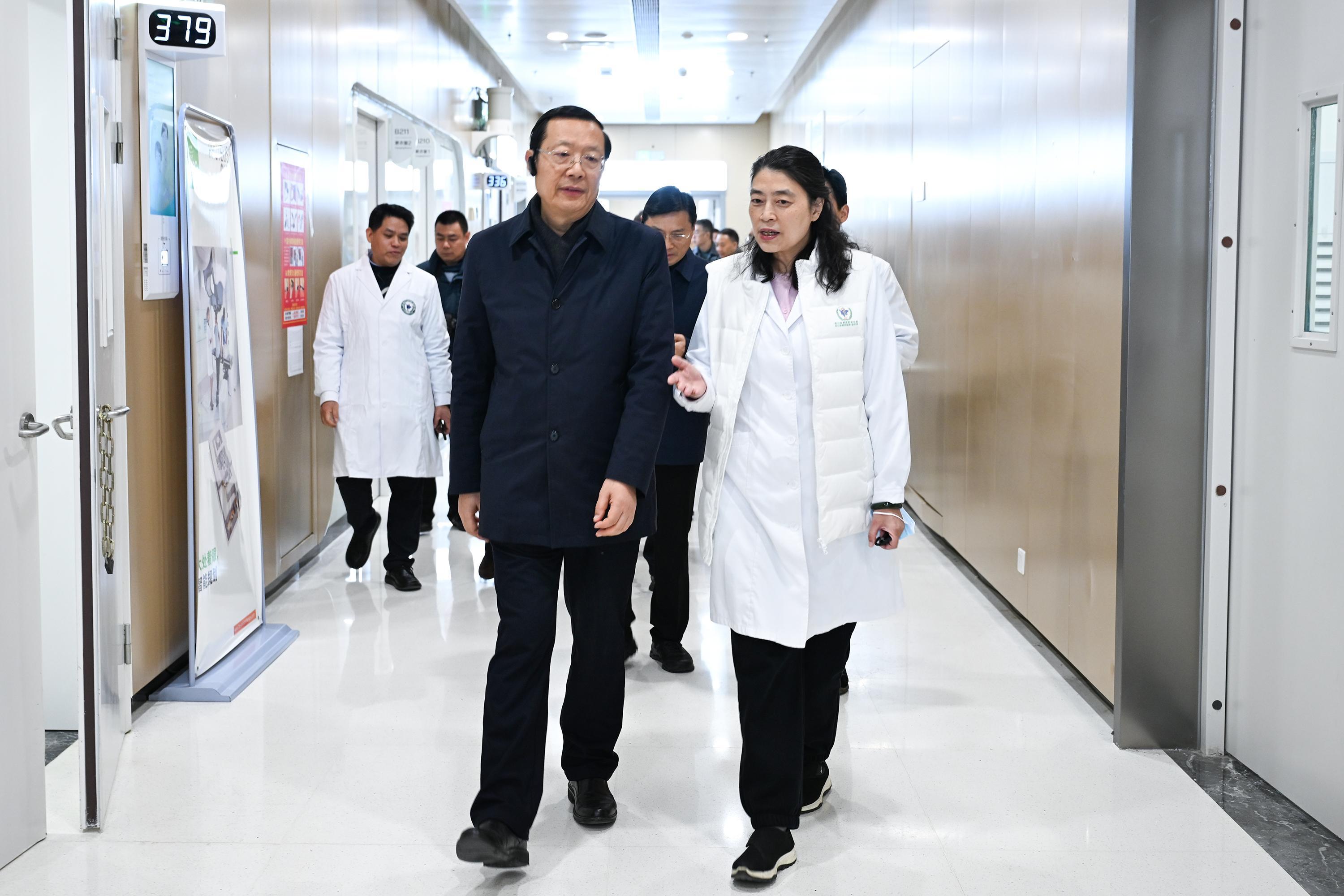 1月20日,成都市人大常委会党组书记、主任张剡率市人大常委会调研组一行,赴我院天府院区开展实地调研。医院党委书记易群,党委副书记樊伟,党委委员、副院长李超,党委委员、总会计师、工会主席李见及相关职能部门负责人陪同调研。