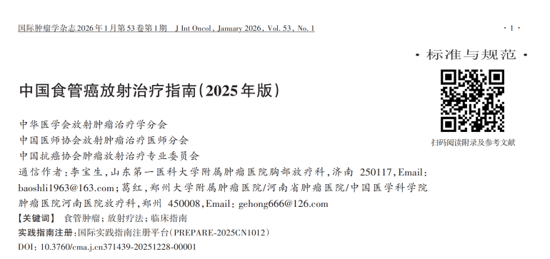 《中国食管癌放射治疗指南(2025年版)》引用情况