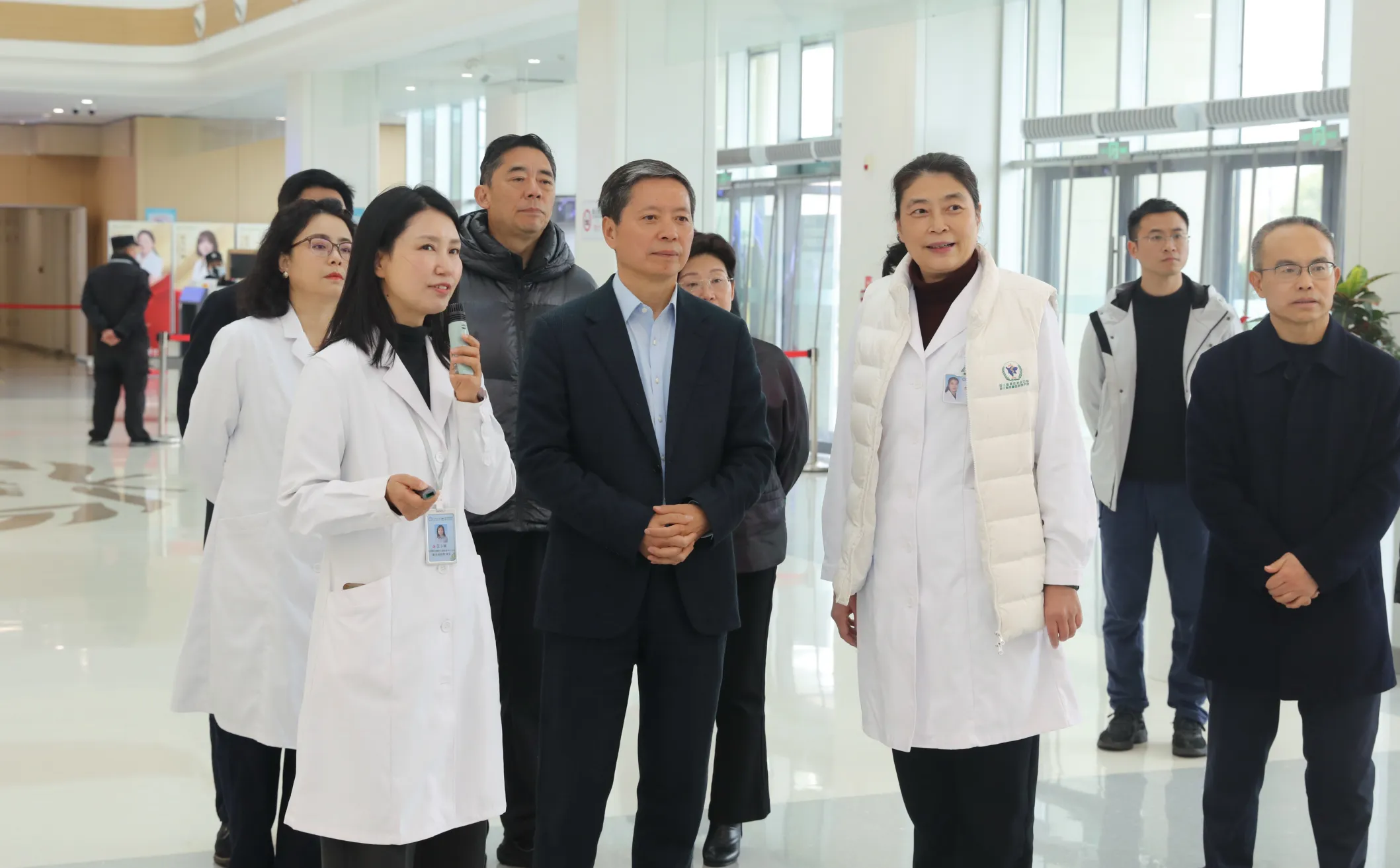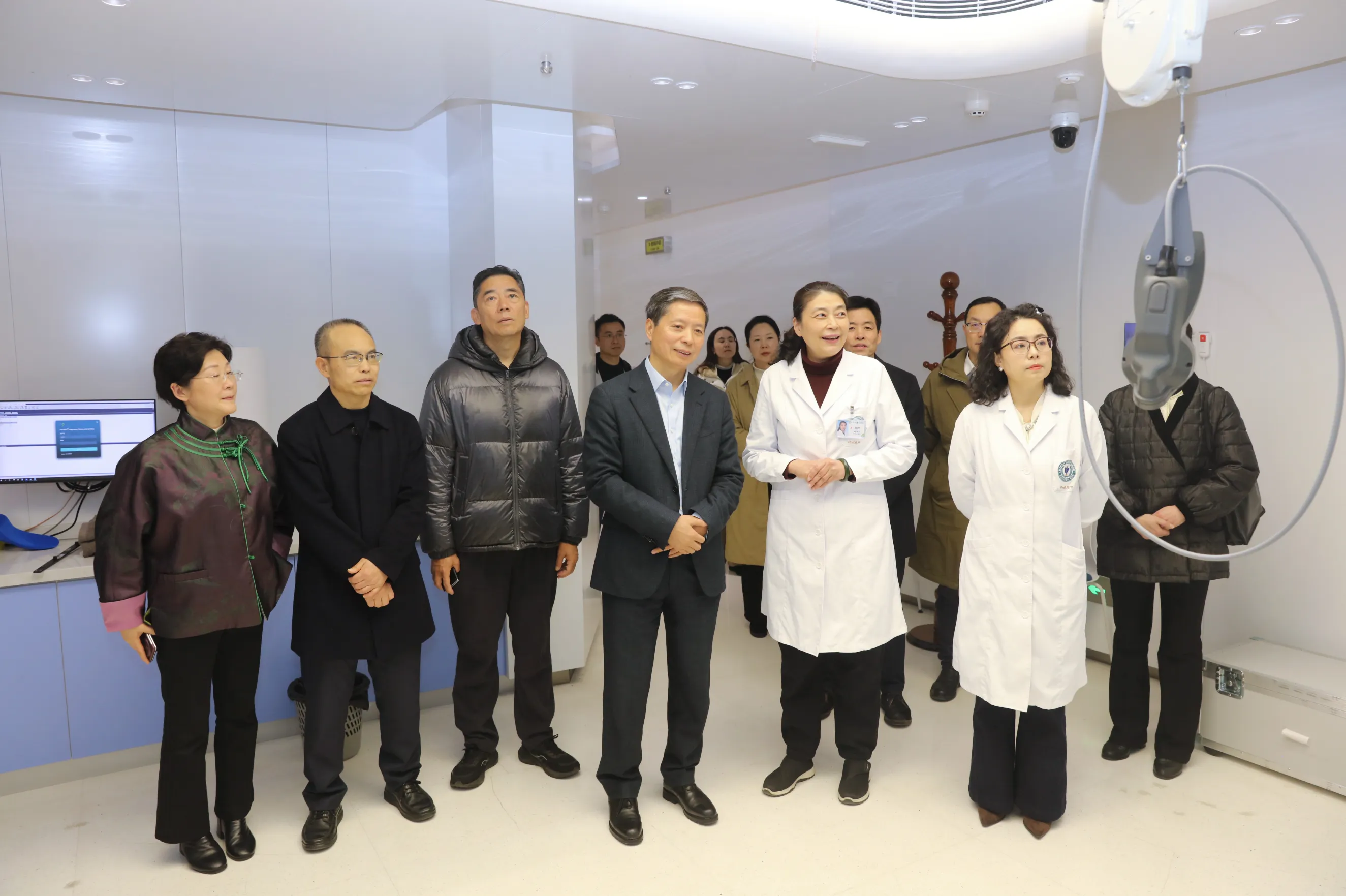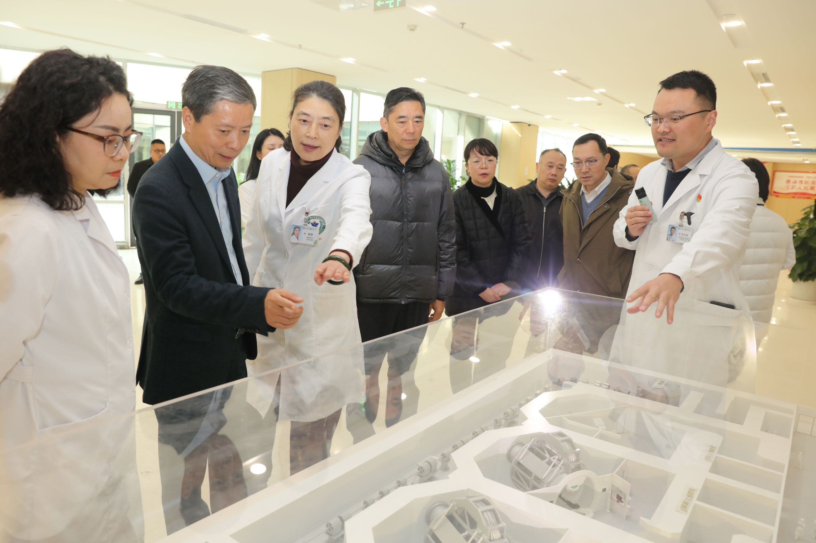 调研组一行在医院党委书记易群、党委副书记樊伟等领导班子成员的陪同下,实地参观了医院文化墙和放疗质子中心。通过参观交流,调研组深入了解了医院在文化建设、学科发展以及尖端医疗技术应用等方面取得的显著成效,对医院在高水平肿瘤防治平台建设中做出的努力给予充分肯定。 参观过程中,陈泉主任与医院领导进行了深入交流,并特别向田超委员表达了亲切慰问。陈泉主任对田超委员认真履行委员职责、立足医疗岗位服务患者给予高度评价,希望她继续发挥专业优势和委员作用,为健康四川建设贡献智慧力量。