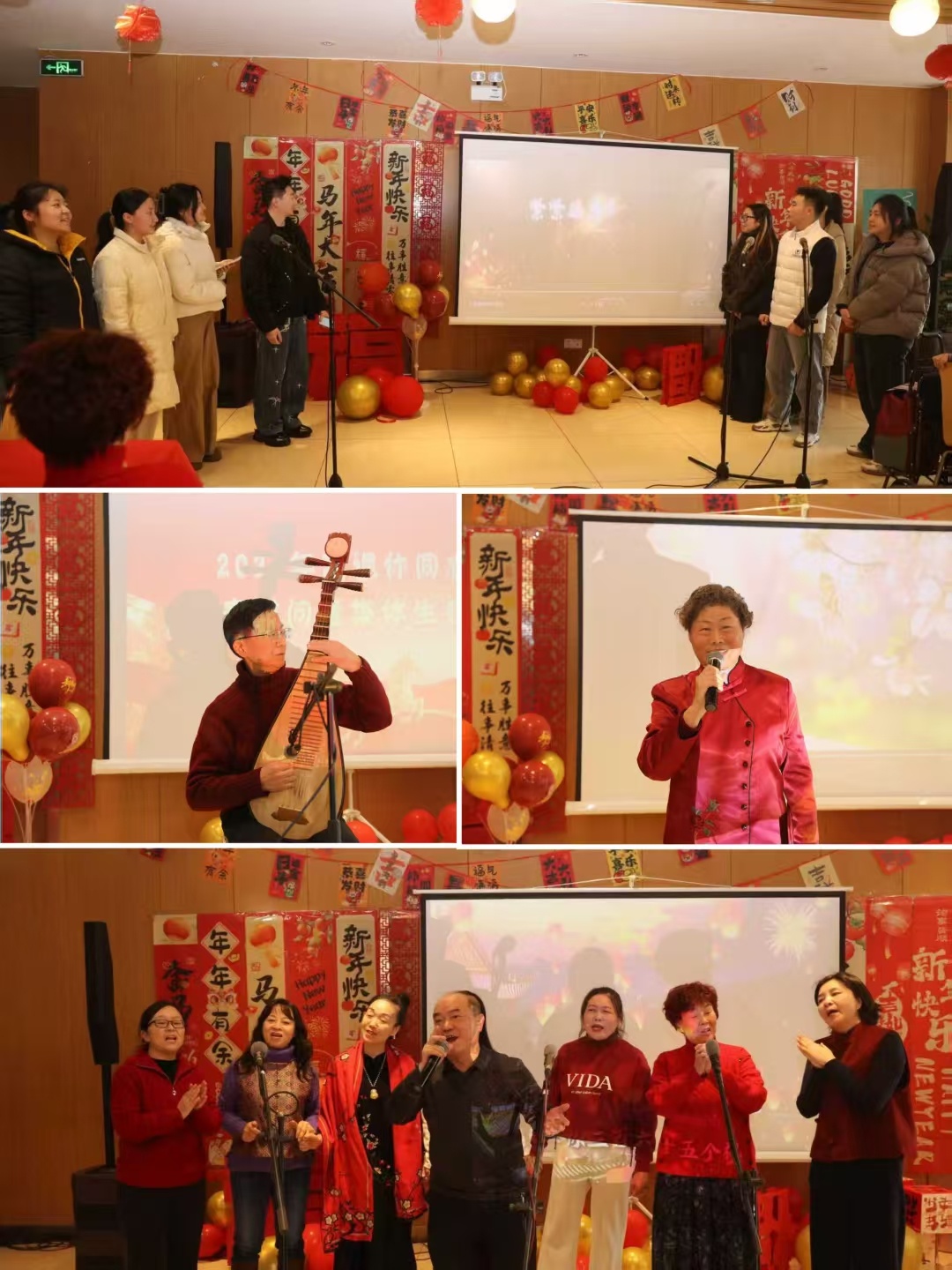紧接着,退休老师杨桂馨同志带来诗朗诵《永远的风华正茂》,致敬老同志们历经岁月沉淀依旧意气风发的初心与风采,引发全场共鸣;龚元发同志带来琵琶独奏《送你一支玫瑰花》,婉转流淌,丝弦声声皆是美好;欢乐的氛围里,离退休同志们再献上一曲《365个祝福》,引领众人齐唱,把日日安康、岁岁无忧的心愿,送给每一位老同志。退休老师邓红菊唱起《希望》,清亮的歌声里,有对过往奋斗的致敬,有对当下安稳的珍惜,更有对未来每一天的满心期许,温柔又有力量。整场活动,歌声、掌声、笑声交织,既有老友重逢的欣喜,也有相聚团圆的温暖,处处皆是欢声与暖意。